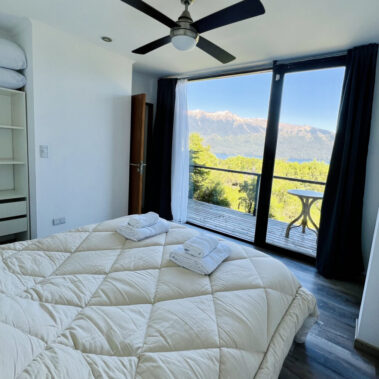 Con capacidad para 4 huéspedes, el departamento cuenta con una acogedora habitación con cama matrimonial y un sofá cama que alberga cómodamente a dos personas más. Disfruta de tus programas favoritos en la TV smart de 43 pulgadas o sumérgete en la belleza de Bariloche desde los ventanales que ofrecen vistas panorámicas al lago Gutiérrez y al majestuoso Cerro Catedral.