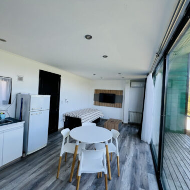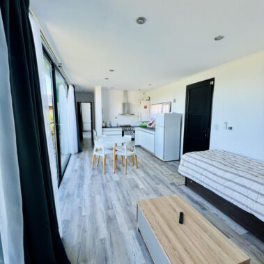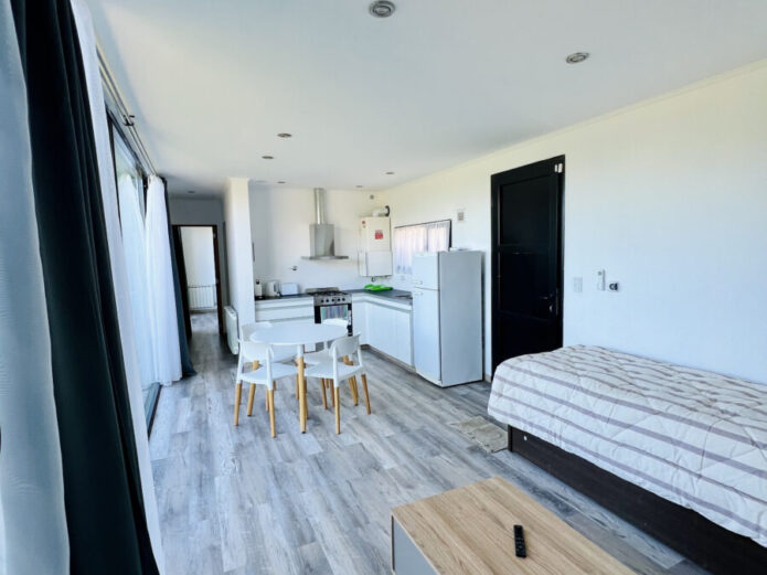 Con sus generosos 60 metros cuadrados, este espacio ha sido cuidadosamente diseñado para brindarte comodidad y estilo. Además, el balcón que se extiende a lo largo de la propiedad te invita a relajarte mientras contemplas los atardeceres inolvidables que solo Bariloche puede ofrecer.