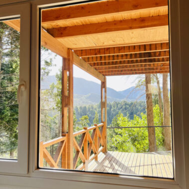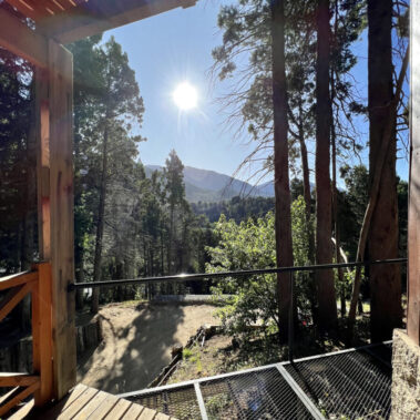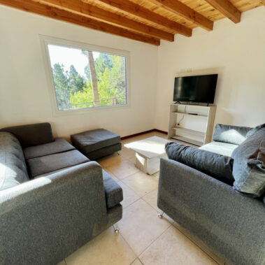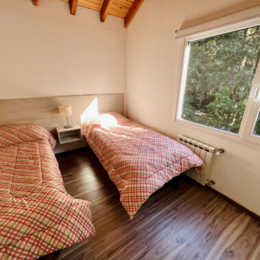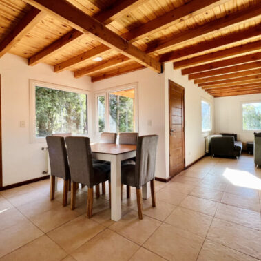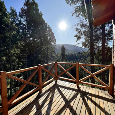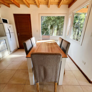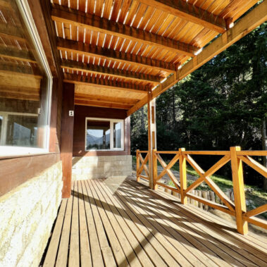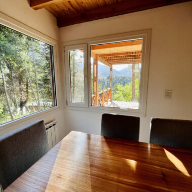 La cabaña se encuentra camino al Cerro Catedral, más específicamente a pocas cuadras de la ruta 82, en una zona muy tranquila, residencial, boscosa y con una gran vista a las montañas. Muy cerca se puede disfrutar del lago Gutierrez, algunos comercios de Villa los Coihues y un supermercado. El centro de la ciudad queda a 12 km.