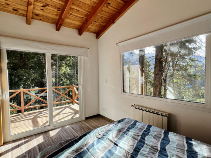 La planta alta dispone de 3 habitaciones, una con una cama matrimonial y un hermoso deck para disfrutar la vista y las otras dos habitaciones tienen 2 camas individuales cada una. En esta misma planta se encuentra el baño completo con bañadera.