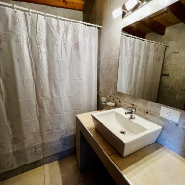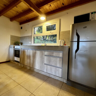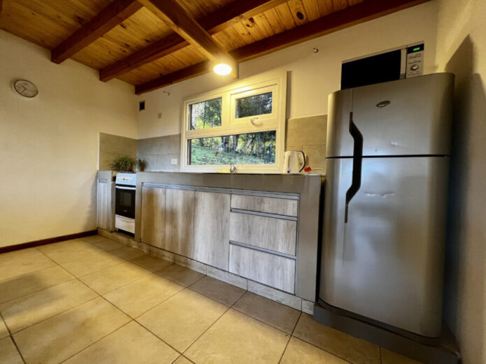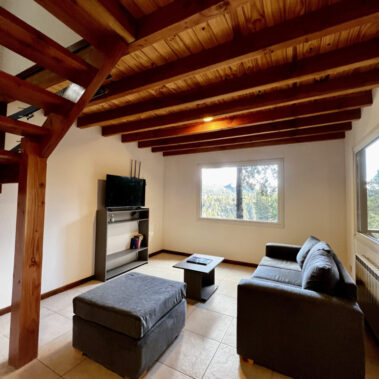 IMPORTANTE: Se accede a la cabaña por medio de una rampa muy bien iluminada y empinada que lo deja directamente en el estacionamiento de la propiedad que cuenta con lugar amplio para dejar su vehículo. Una vez allí deben subir unas escaleras para llegar.