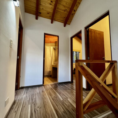 La planta alta dispone de 3 habitaciones, una con una cama matrimonial y un hermoso deck para disfrutar la vista y las otras dos habitaciones tienen 2 camas individuales cada una. En esta misma planta se encuentra el baño completo con bañadera.