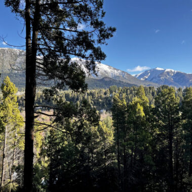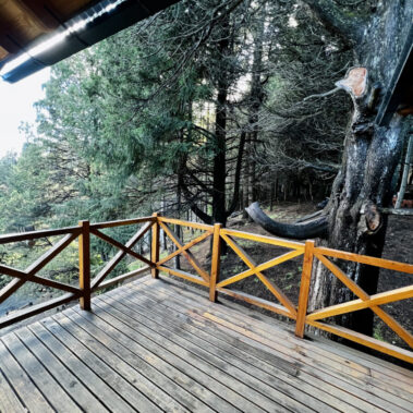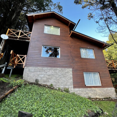 La cabaña se encuentra camino al Cerro Catedral, más específicamente a pocas cuadras de la ruta 82, en una zona muy tranquila, residencial, boscosa y con una gran vista a las montañas. Muy cerca se puede disfrutar del lago Gutierrez, algunos comercios de Villa los Coihues y un supermercado. El centro de la ciudad queda a 12 km.
