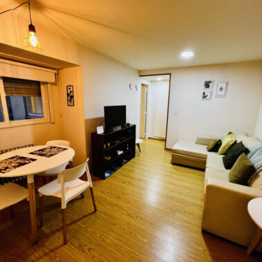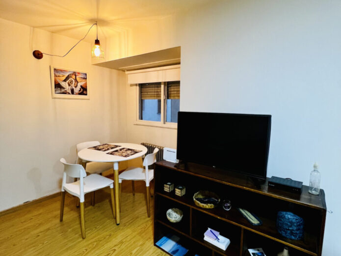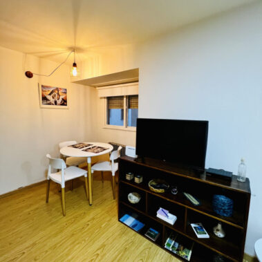 Este hermoso departamento cuenta con una habitación con somier de dos plazas que puede transformarse en dos camas individuales. Baño completo con bañadera. Amplio comedor y living con televisor. Cocina separada y equipada con todo lo necesario para su estadía.
