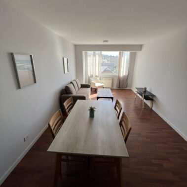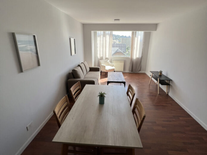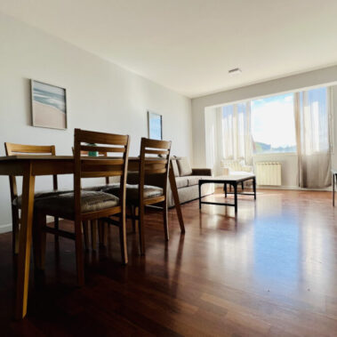 El departamento es muy amplio y luminoso. Tiene un living comedor con mesa y silla para los 4 huéspedes con un cómodo sillón.