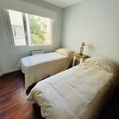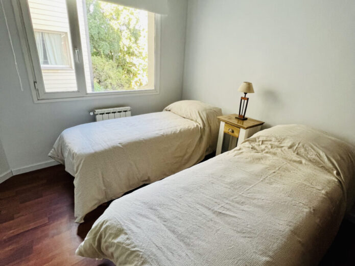 Dos habitaciones con sus armarios, en la habitación principal una cama matrimonial con posibilidad de convertirse en dos camas individuales y en la habitación secundaria dos camas individuales.