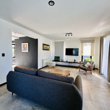 Esta espaciosa y moderna casa es perfecta para aquellos que deseen disfrutar de unas vacaciones relajantes en uno de los destinos más impresionantes de Argentina. La casa tiene 3 dormitorios en la planta alta. El principal cuenta con una cama king zise y baño en suite. El secundario posee una cama matrimonial y el tercero dos camas individuales. El espacio común que conecta las dos habitaciones y el baño completo que comparten actúa como 4 habitación con dos camas individuales lo que hace que la casa tenga una capacidad para 8 huéspedes en total.