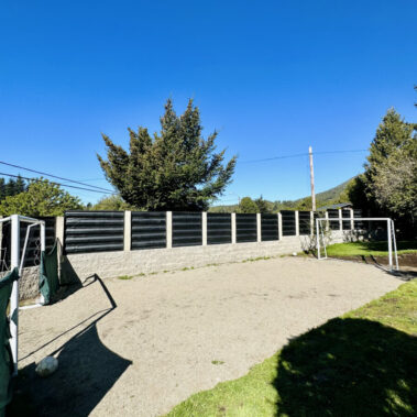 La propiedad tiene una hermosa piscina climatizada con terraza y reposeras, cancha de fútbol, su propio gimnasio, fogata y un parque muy espacioso y luminoso.