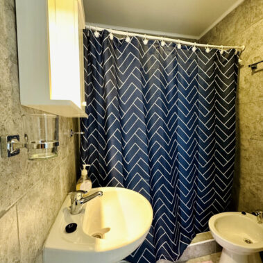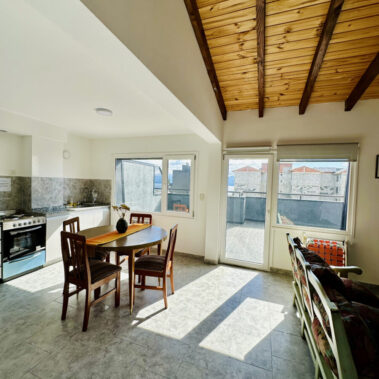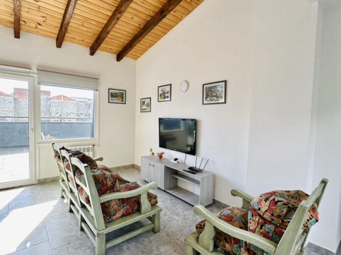 Al ingresar al departamento nos encontraremos con su amplio living-comedor que cuenta con sillones, TV con chromecast y mesa con sillas para todos los huéspedes.