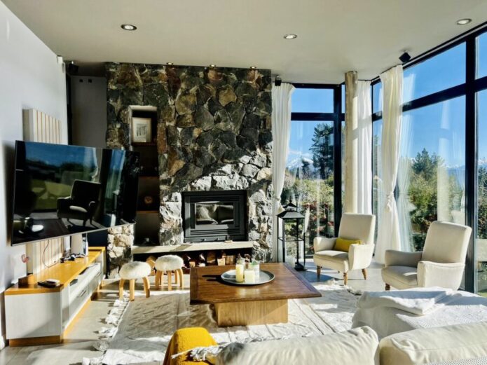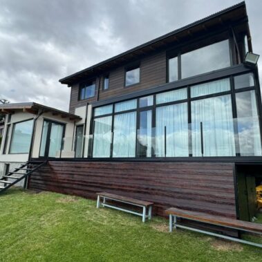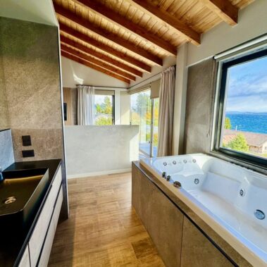 Esta hermosa casa se encuentra a 7 km del centro de Bariloche. En una zona residencial muy tranquila.