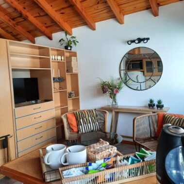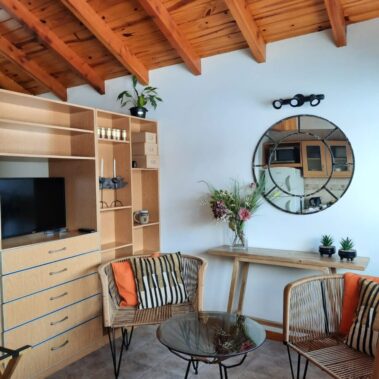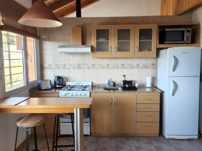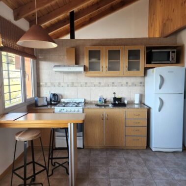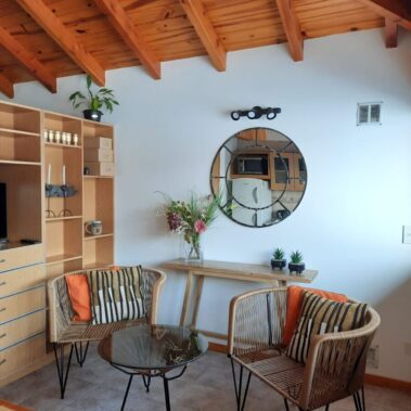 Este hermoso departamento cuenta con una cocina completa, living comedor con TV Led de 32 pulgadas, una habitación, separada del resto del departamento por una división, con una cama de dos plazas que puede transformarse en dos camas individuales. Baño completo.