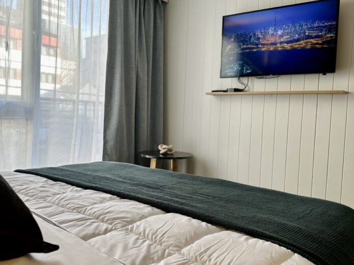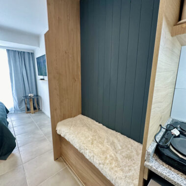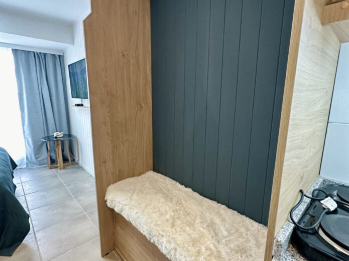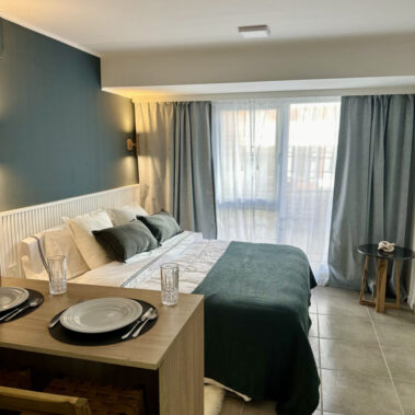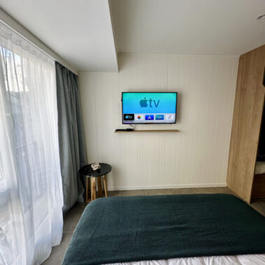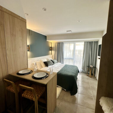 Departamento a estrenar, cuenta con cama matrimonial para albergar 2 huéspedes, baño completo, barra desayunador y espacio para guardar equipaje.