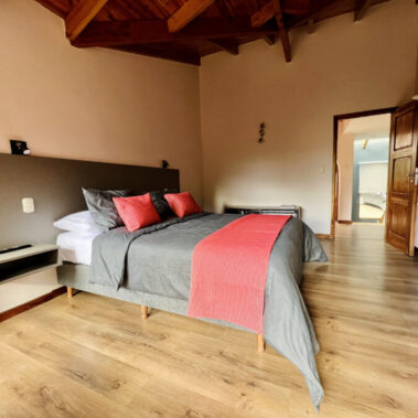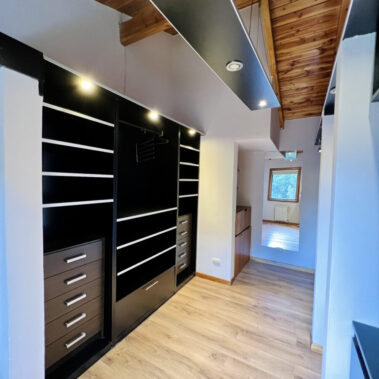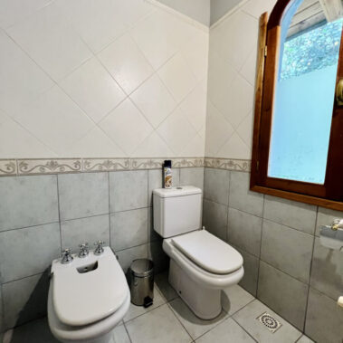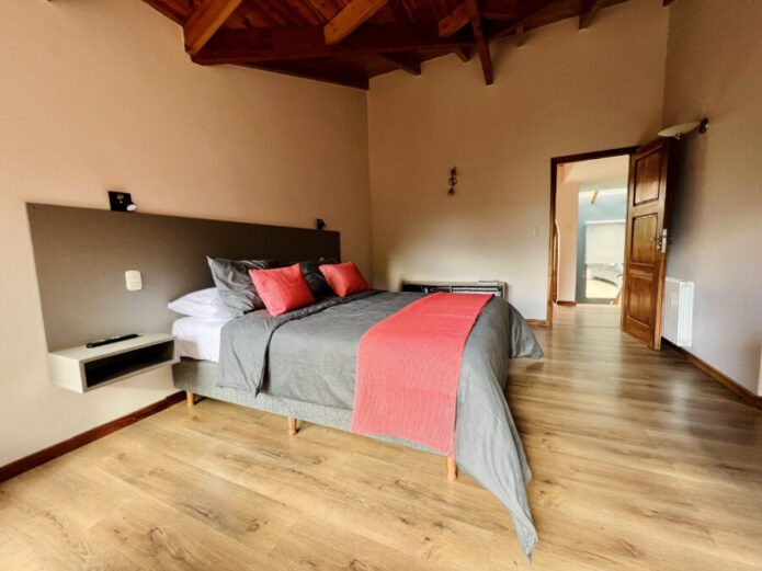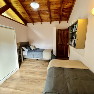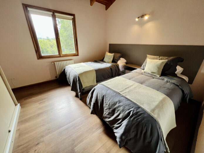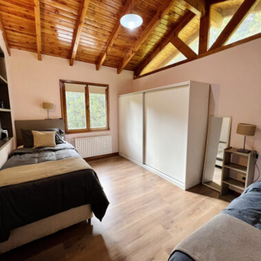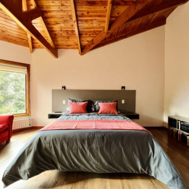 Esta espectacular casa tiene una capacidad máxima para 8 huéspedes. La propiedad cuenta con dos plantas. En la parte superior se pueden encontrar 3 habitaciones, dos de ellas con camas individuales y que comparten en la zona común un baño completo con bañadera. La habitación principal cuenta con una cama matrimonial, un gran vestidor y un baño.