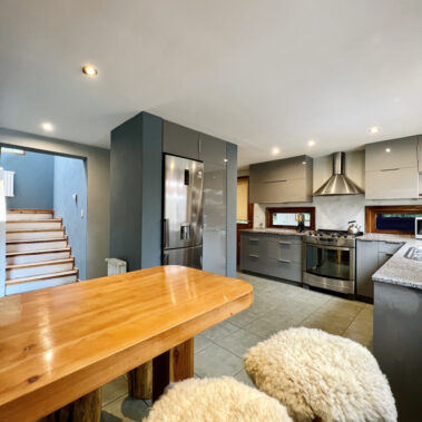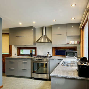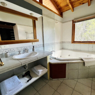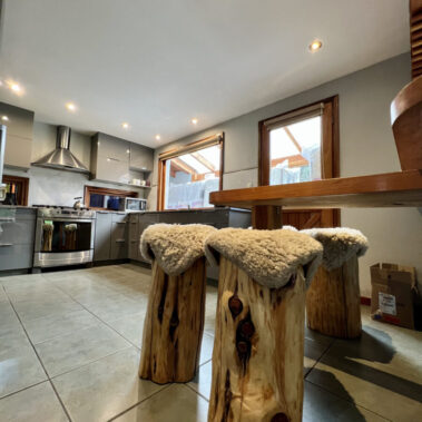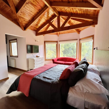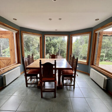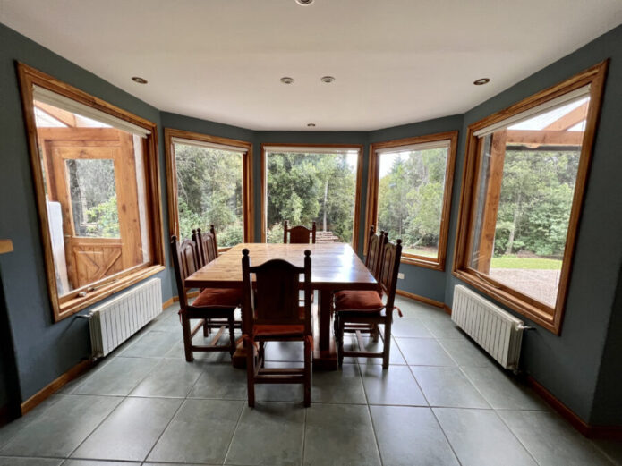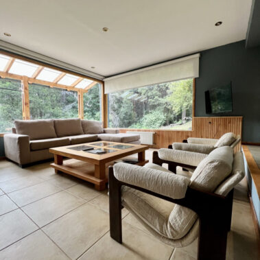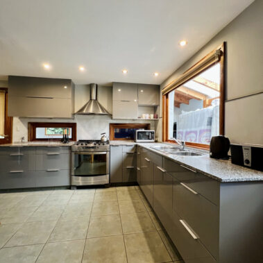 La casa se encuentra a 13 kilómetros del centro de la ciudad en una zona muy tranquila y residencial, boscosa. Muy cerca se puede disfrutar del lago Gutierrez, algunos comercios de Villa los Coihues y un supermercado.
