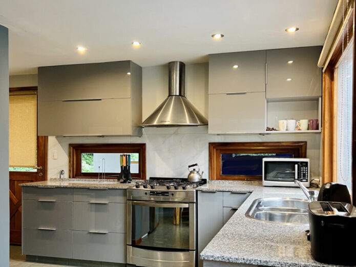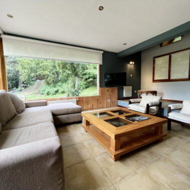 La planta baja de la casa posee una gran cocina completamente equipada. El comedor es un espacio muy amplio y cómodo con una hermosa vista al bosque. El living de la casa cuenta con televisor, cómodos sillones y un toilette.